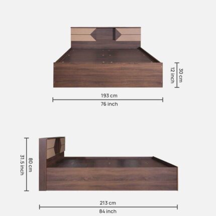 Shamon King Size Bed With Box Storage In Walnut Finish