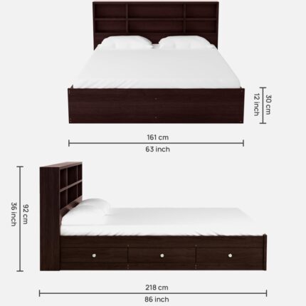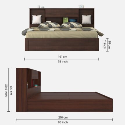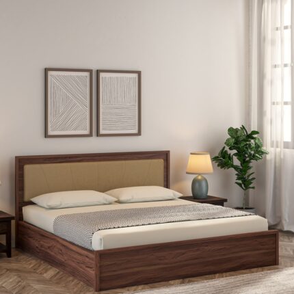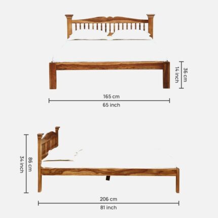 Uttara Solid Wood Queen Size Bed In Rustic Teak Finish