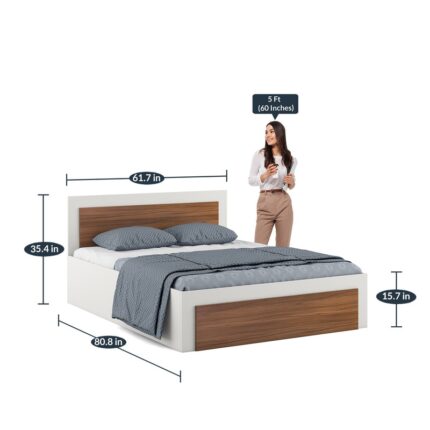 Dimora Queen Size Bed with Hydraulic Storage in Frosty White Colour