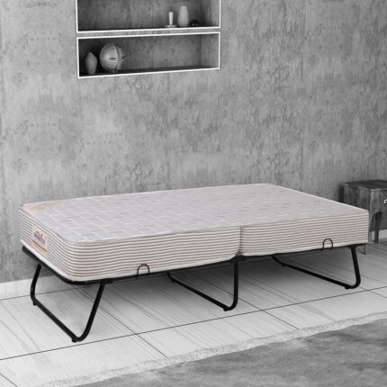 Eurasia Metallic Folding Bed With 3 Inch Mattress In Black Colour