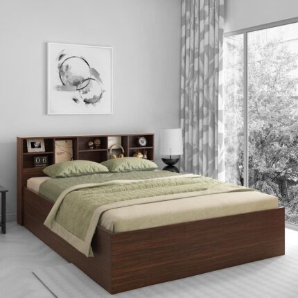 Electra King Size Bed With Box Storage In Choco Walnut Finish