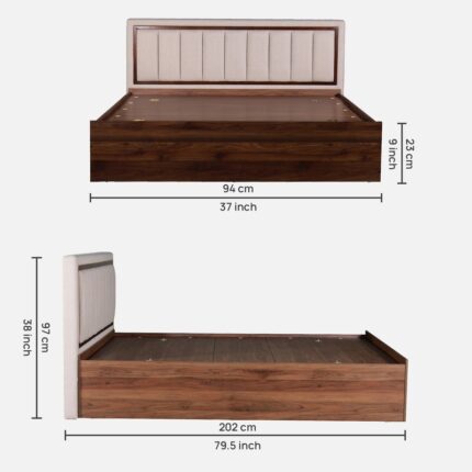 Comet Queen Size Upholstered Bed with Hydraulic Storage in Exotic Teak Finish