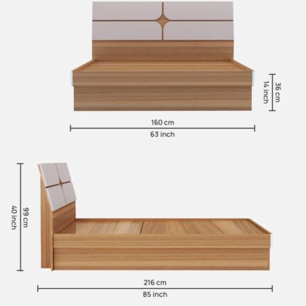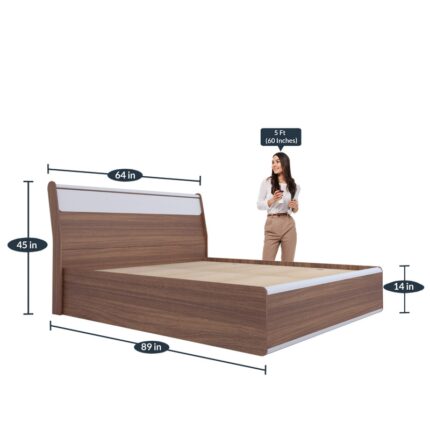 Kruger Queen Size Bed with Hydraulic Storage in Teak finish