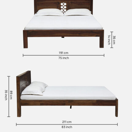 Lixo Queen Size Bed with Box Storage in Teak finish