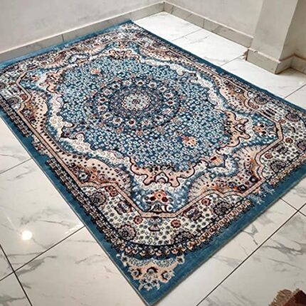 Silk Persian Traditional Designer Carpets for Living Room, Size 4 x 6 Feet [120 x 180 cm], Super Blue