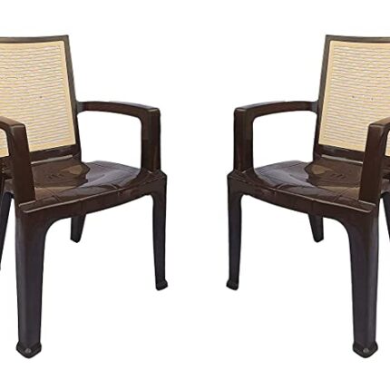 Nemi Agency Nilkamal High Gloss Finish Mid Back Plastic Chair (Brown and Biscuit) – Pack of 2