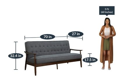 Jazmin 3 seater Sofa in Dark Grey Colour with Brown Oak Finish