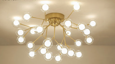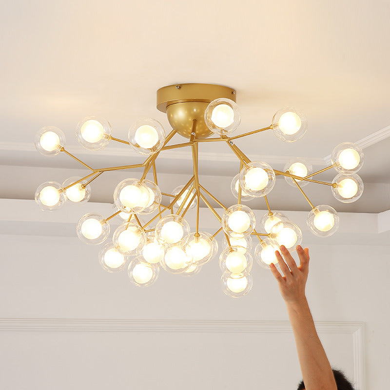 27 LIGHTS BALL FIREFLY GOLD CHANDELIER AMBER GLASS LED CEILING LIGHT HANGING LAMP – WARM WHITE