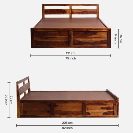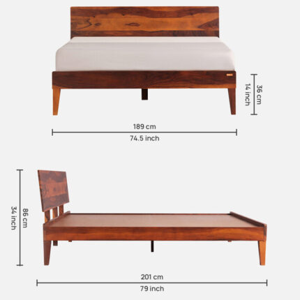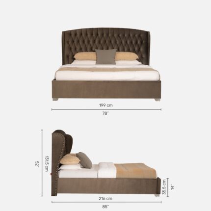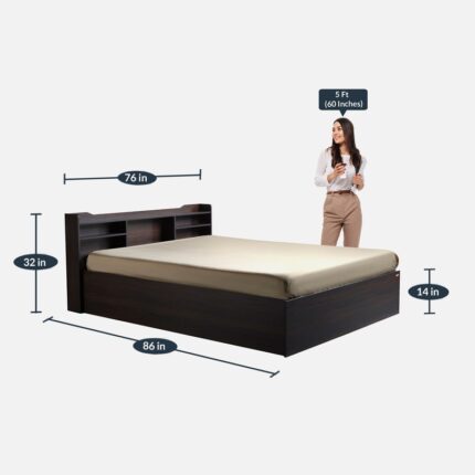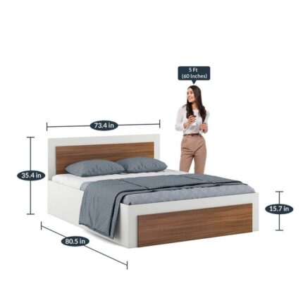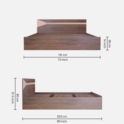 BrandA GLOBIA CREATIONSDimensions(In Inches)H 31.1 x W 61.6 x D 79.9Weight79 KGWarranty36 Months’ WarrantyAssemblyCarpenter AssemblyPrimary MaterialEngineered WoodRoom TypeBedroomStorageNo StorageSeating Height12.8Recommended Mattress Size78 L x 60 W InchProduct Rating5Dimensions (In Centimeters)H 79 x W 156.5 x D 202.9