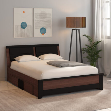 Comet Queen Size Upholstered Bed with Hydraulic Storage in Exotic Teak Finish