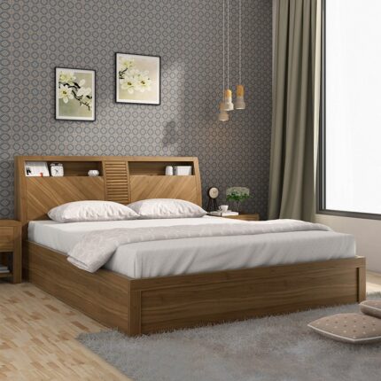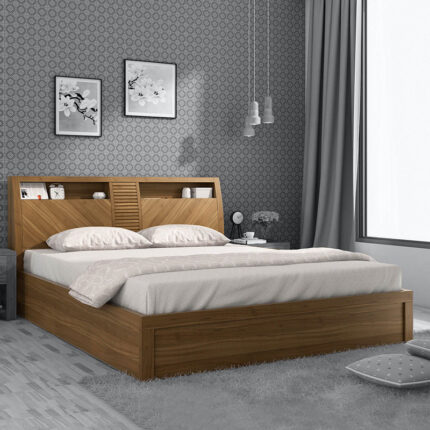 Hideki Blackline King Size Bed With Box Storage In Walnut Finish
