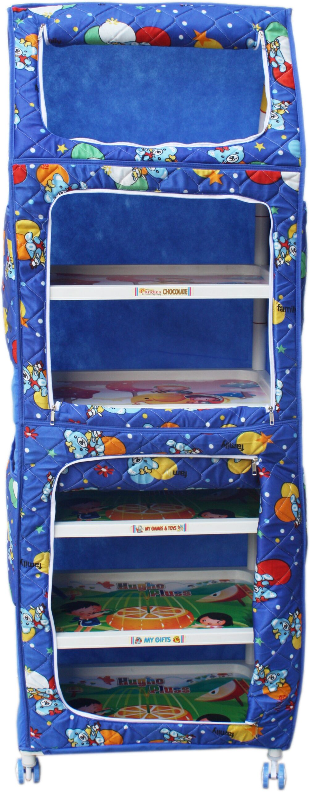 Key Features of Amardeep PP Collapsible Wardrobe The trays are extra broad and spacious than ever. The size of a single tray measures 40*50cms(l*b) Divided in two compartments- making it easy to bifurcate your stuff. Ajustable hieght feature- you can adjust the height of trays per your requirement. Specially Quilted to provide extra durability & subtle looks to the cover. Side pockets for extra storage.,Amardeep PP Collapsible Wardrobe (Finish Color – BlueHughoRed6t) Price: Rs. 2,500 Your childs storehouse to keep his stuff neatly in 6 jumbo large and extra spacious trays.It’s a Chlid’s dream cabinet -specially designed to help him become organised. An ideal solution to segregate your kid’s toys, accessories, stationery items with a neat and tidy look, So now the toys will no more be scattered in your room, place it in any corner of your room and relish the space you always desired. A ‘must have’ for its multipurpose usage. The quilted cover is specially designed to last longer and is home washable. This almirah comes with 4 wheels- making it easy to push or relocate.,Specifications of Amardeep PP Collapsible Wardrobe (Finish Color – BlueHughoRed6t) In The Box 1 collapsible wardrobe General Brand Amardeep Foldable Yes Delivery Condition DIY(Do-It-Yourself) Style Contemporary & Modern Number of Zippers 3 Rod Included Yes Number of Shelves 6 Suitable For Kids Room Model Number HughoBlue6t Enclosure Type Zipper Bush Included Yes Finish Type Glossy Care Instructions Clean with Soft Cloth, Wipe clean regulary with a detergent for plastic Dimensions Weight 5 kg Height 1580 mm Width 550 mm Depth 400 mm Warranty Covered in Warranty Warranty of the product is limited to manufacturing defects only. Warranty Summary 10 days replacement warranty on the parts if found damaged Service Type Damaged Parts Will Be Sent Via Courier Not Covered in Warranty Warranty does not cover the cloth of almirah,neither it covers the damage caused to the product due to improper fitting by customer or normal wear and tear of the wheels. Disclaimer – The color of the product may vary slightly compared to the picture displayed on your screen. This is due to lighting, pixel quality and color settings – Please check the product’s dimensions to ensure the product will fit in the desired location. Also, check if the product will fit through…View More – The color of the product may vary slightly compared to the picture displayed on your screen. This is due to lighting, pixel quality and color settings – Please check the product’s dimensions to ensure the product will fit in the desired location. Also, check if the product will fit through the entrance(s) and door(s) of the premises – Please expect an unevenness of up to 5 mm in the product due to differences in surfaces and floor levels – Flipkart, or the Seller delivering the product, will not take up any type of civil work, such as drilling holes in the wall to mount the product. The product will only be assembled in case carpentry assembly is required – In case the product appears to lack shine, wiping the surface with a cloth will help clear the surface of dust particles Material & Color Primary Material Plastic Primary Color Blue Secondary Material Fabric Secondary Material Subtype Polyester Finish Color BlueHughoRed6t Primary Material Sunbtype PP Additional Features Origin of Manufacture India