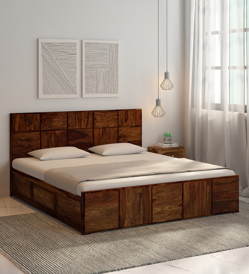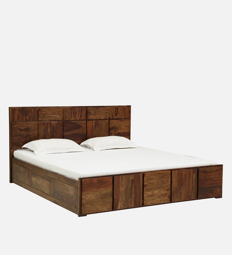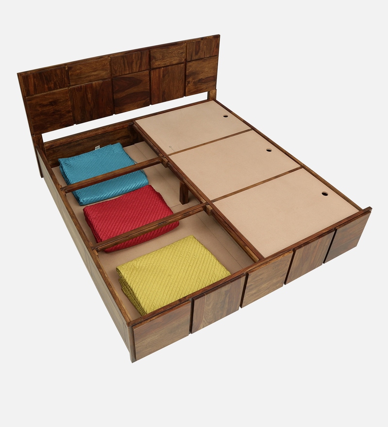 Bergen Solid Wood King Size Bed With Box Storage In Provincial Teak Finish