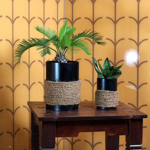 A Trendy metal with jute plant Pots / table top pot with smooth powder coated finish for rust resistance. A great piece of art for metal lovers. Purely conceptualised & made in India by local iron crafter/Blacksmiths. Suitable for plants indoor/outdoor/terrace/balcony gardens. Can be use for homes & office. Comes with a proper drainage holes.