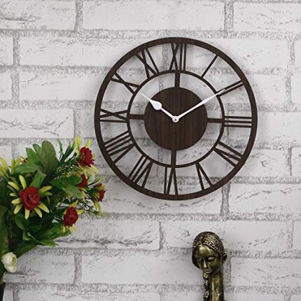 Webelkart Roman Beautiful Round Wood Wall Clock without Glass (12 Inch x 12 Inch, Brown)