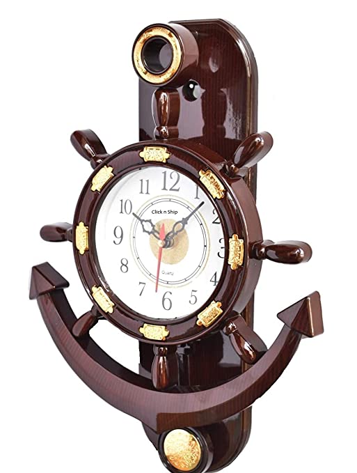 About this itemThis is a Classic styled analog wall clock. Size- small (No sound)This clock will add charm to any room in your home. This wall clock can be a good gift at housewarmings, weddings, and social gatheringsThis clock comes with a Warranty of 1 Year.A classic ship steering alike designed wall clock with pendulum that would add to the decor of your house.Best Diwali Gift items for your staff members family members friends relatives etc.Product Color – Brown, Material- Plastic, Quality-Premium Quality MADE IN INDIA