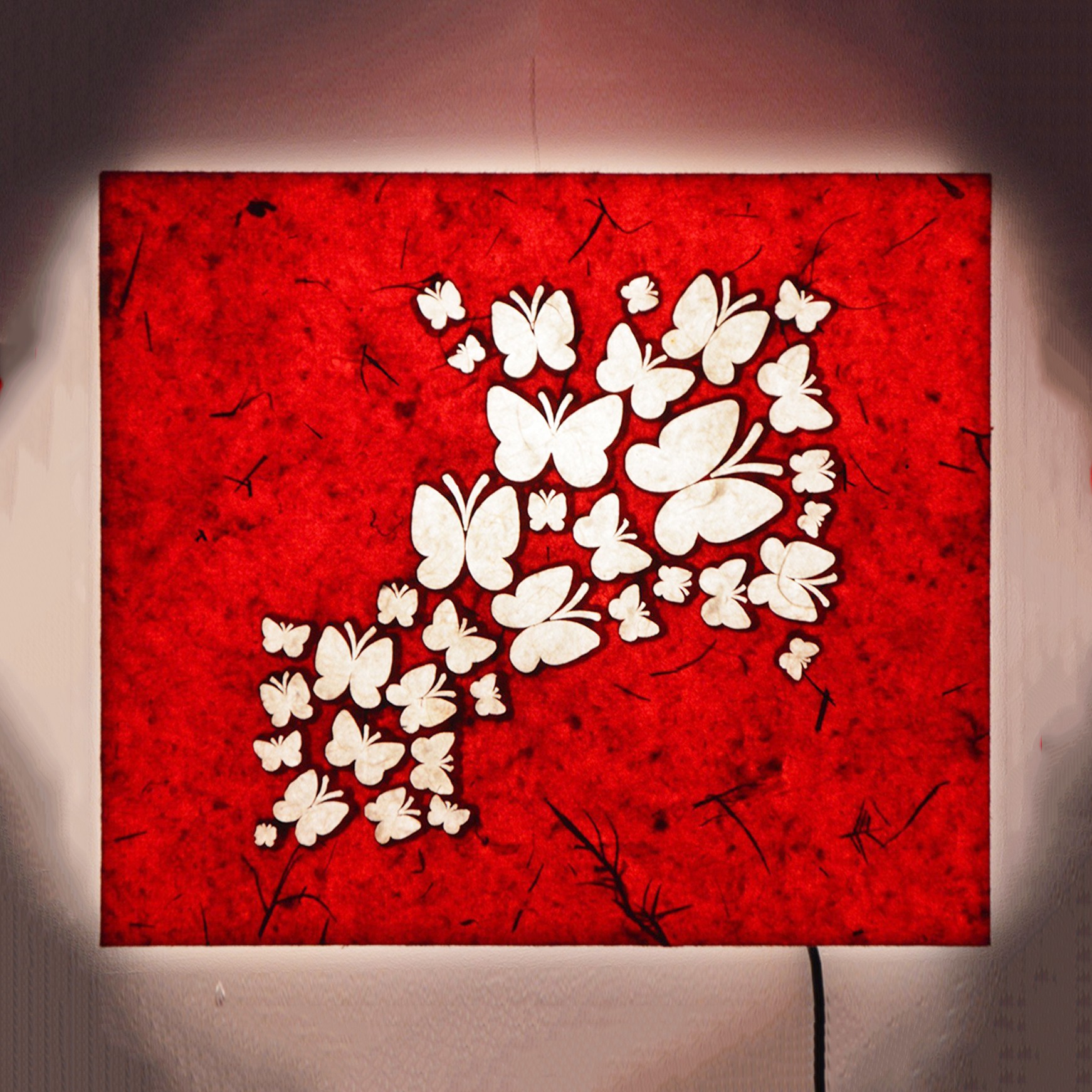 product specification keySales Package, valueWall Lamp with Electric Fitting, keyNumber of Contents in Sales Package, valuePack of 1, keyType, valueWall Lamp, Night lamp, keyColor, valueRed, keyWith Shade, valueYes, keyLamp Shade Material, valueAcrilic Sheet with Handmade Paper, keyBulb Type, value1 X 0.5 W, keyAssembly Required, valueNo, keyModel Name, valueFlying Butterfly Square, keyModel Number, valueCSWL-2, keyPower Source, valueAC, keyWidth, value22 cm, keyHeight, value20 cm