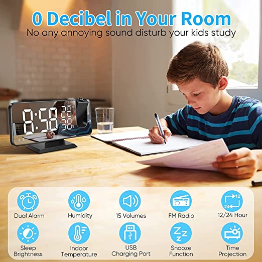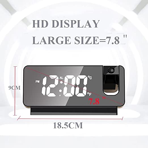 About this itemHigh-definition mirror display: Our digital lock with a high-definition display, wide visible angle, which can see the time from a long distance and different angles. Combine with glass mirror and time display function, the screen can use as a mirror for your beauty and makeup while taking time. The special mirror surface is not easy to clean and can be cleaned with a single rub to restore the original appearance.Automatic sleep function: no weather alarm that keeps ticking, affects your sleep quality. The electric light is quiet, which allows you to get out of the noise of the night and the deep hair. The luminous and environmentally friendly function allows you to see the time clearly at night and you don’t have to worry about the lights. and you can use the night MODE, which can be automatically changed half brightness from Pm18: –Am:6: o clock for avoiding damage to your eyes.180° Adjustable Projection: The LED projection is designed with 180° angle, while our bell has a power button that you can project the time on the wall or in the distance of 2-3m every free place.Easy Snooze Function – The alarm uses a snooze button so you can easily remove the buzzer without using the button. The big button helps you to remove the buzzer without having to worry about making your eyes look happy and enjoy a few minutes of sleep. The clock will alarm every 5 minutes until you turn off the snooze mode by pressing any other buttons. You can also set snooze time by yourself, 1-60 minutes (settable) of extra sleep time, perfect for heavy sleeper.Temperature memory function: our alarm screen can display the temperature inside the door, the default image showing way is the °C and you can adjust to °F by the down key.The normal measurement range is -10°C- 50°C (14°F-122°F). The bell inside CR2032 battery button, when the external power supply is on, the time and various games will keep on.