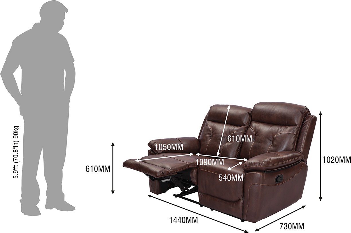 Durian Dream/2 Leather 2 Seater Sofa (Finish Color – Brown)