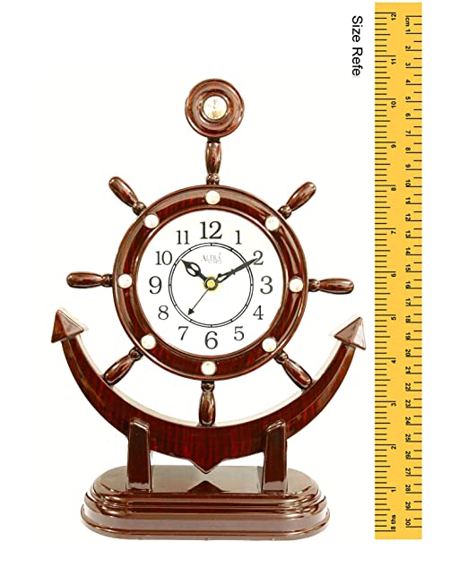 About this itemFull plastic body Table ClockMaterial : Plastic ; Colour: BrownProduct Dimension in Inch (L x H) :- 7 X 10.5 ; dial size is 3.75 inchIt is given antique finish with good machine movement.