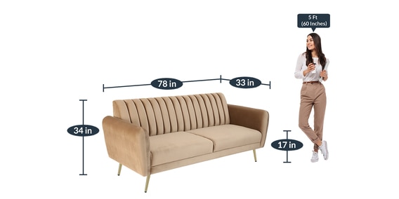 BrandCasaCraftDimensions(In Inches)H 34 x W 78 x D 33Weight54 KGWarranty36 Months’ WarrantyAssemblyCarpenter AssemblyPrimary MaterialVelvet FabricRoom TypeLiving RoomCollectionFidelProduct Rating5Dimensions (In Centimeters)H 86 x W 198 x D 84Sofa FirmnessMedium