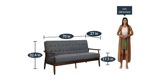 Specification GeneralFrame Material : Rubber WoodFabric : 100% PolyesterLeg : Solid WoodFoam : SEAT : 3 2/8SS ; BACK 2 23SSSuspension System : Coil SpringDisclaimers:Accessories shown in the image are only for representation and are not part of the product.Depending on your screen settings and resolution on your device there may be a slight variance in fabric color and wood polish of the image and actual product.Wood grains will vary from product to product in case of solid wood furniture.Furniture having intricate hand-painted details are individual unique pieces and may have slight distinctions and variance between the picture and actual product.The Primary material is the main material used to manufacture the product and in addition to the primary material there might also be other type of materials used in the manufacturing of the product.