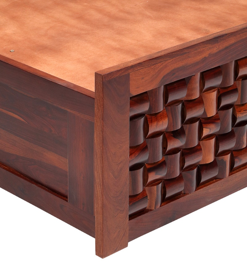 Specification GeneralMade Up Of Kiln Dried Chemically Treated Sheesham Solid Wood.Bed Head Board Is 40 mm Thick.Side Panels Are 27mm Thick .Headboard Has Very Elegant Design .Foot Board Is 27 mm Thck.Height Of The Side Rails From The Floor Is 400mm.Mattress Pannel Made Up With Ply Wood Which Is Very Sturdy & Durable.This Bed Has Box Storage.Recommended Mattress Size : 78X 60Disclaimers:Accessories shown in the image are only for representation and are not part of the product.Depending on your screen settings and resolution on your device there may be a slight variance in fabric color and wood polish of the image and actual product.Wood grains will vary from product to product in case of solid wood furniture.Furniture having intricate hand-painted details are individual unique pieces and may have slight distinctions and variance between the picture and actual product.The Primary material is the main material used to manufacture the product and in addition to the primary material there might also be other type of materials used in the manufacturing of the product