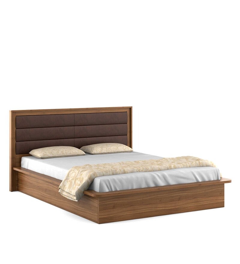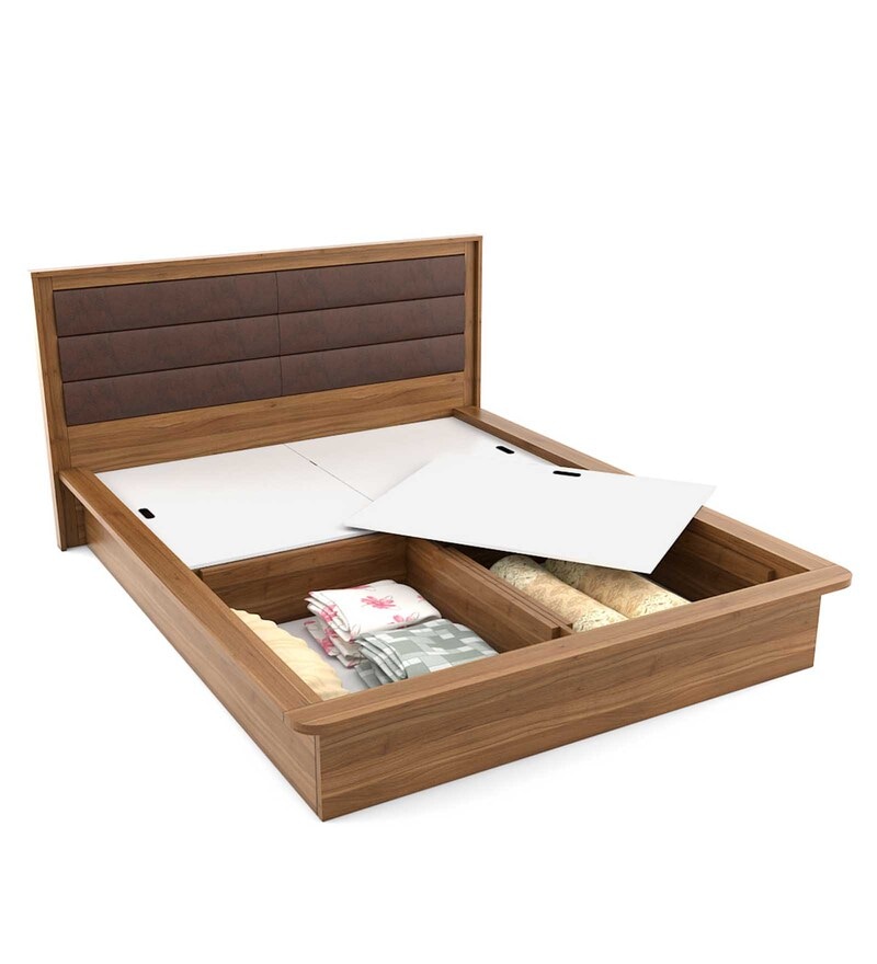 Home beds Kosmo Cooper Queen Size Upholstered Bed With Box Storage in Natural Teak Finish