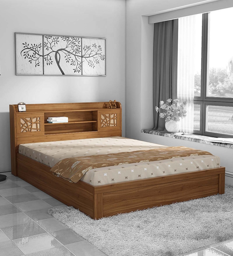 Kosmo Rayan King Size Bed With Box Storage in Natural Teak Finish