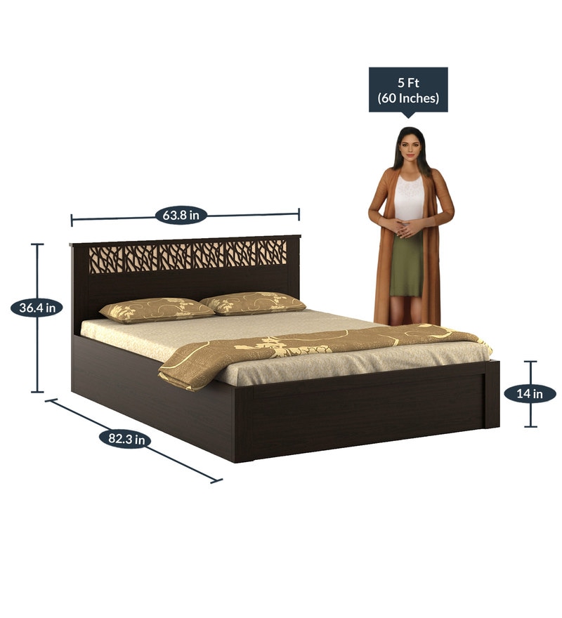 BrandSpacewoodDimensions(In Inches)H 36.4 x W 63.8 x D 82.3; Seating Height-14(all dimensions in inches)Weight140 KGColourVermountWarranty36 Months’ WarrantyAssemblyCarpenter AssemblyPrimary MaterialEngineered WoodRoom TypeBedroomCollectionWeaveStorageBox StorageSeating Height14Recommended Mattress Size78 L x 60 W InchProduct Rating4.5Dimensions (In Centimeters)H 93.98 x W 162.56 x D 210.82