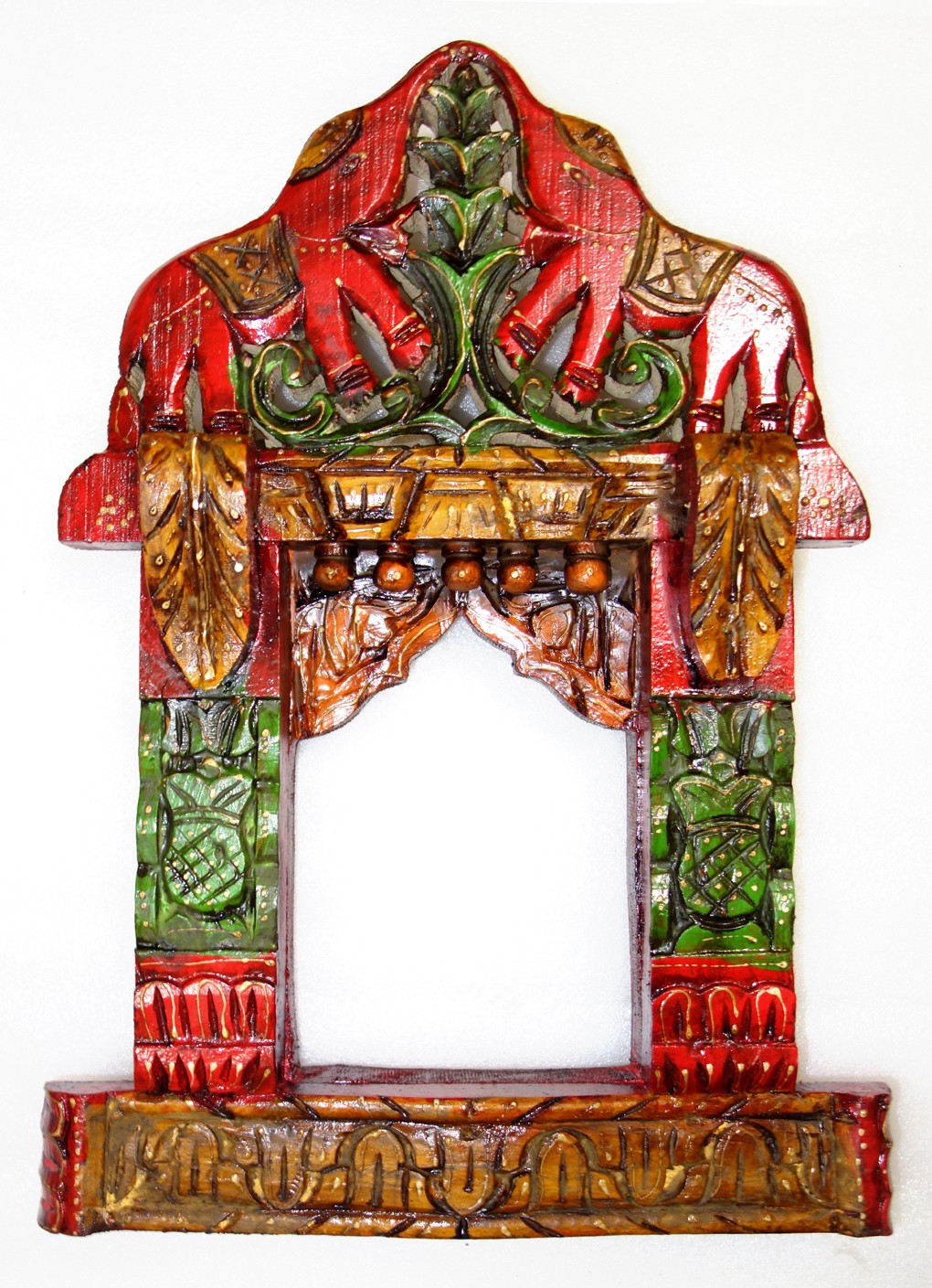 Lal Haveli Beautiful Wooden Jharoka Photo Frames Showpiece – 43.18 cm (Wooden, Multicolor) Price: Rs. 1,499 This traditional Rajasthani designer jharokha has been carved out of wood and symbolizes the exquisite skill of the craftsman. The beautiful gold patterns that adorn the artwork give it an intense royal look and make it a perfect gift item for any occasion or even for enhancing your home decor.This traditional Rajasthani designer jharokha has been carved out of wood and symbolizes the exquisite skill of the craftsman. The beautiful gold patterns that adorn the artwork give it an intense royal look and make it a perfect gift item for any occasion or even for enhancing your home decor.
