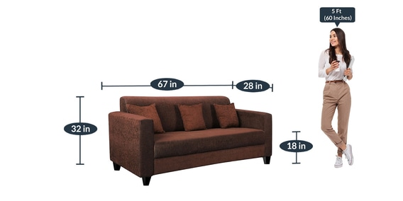 BrandFebonicDimensions(In Inches)H 32 x W 67 x D 28Weight45 KGColourBrownWarranty24 Months’ WarrantyAssemblyCarpenter AssemblyPrimary MaterialFabricRoom TypeLiving RoomSeating Height18Product Rating5Dimensions (In Centimeters)H 81.3 x W 165.1 x D 71.1