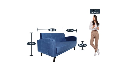 ARRADimensions(In Inches)H 34 x W 68 x D 31Weight32.7 KGColourBlueWarranty36 Months’ WarrantyAssemblyCarpenter AssemblyPrimary MaterialVelvet FabricRoom TypeLiving RoomCollectionRomeSeating Height16.5Product Rating4.5Dimensions (In Centimeters)H 86.4 x W 172.7 x D 78.7Sofa FirmnessMedium