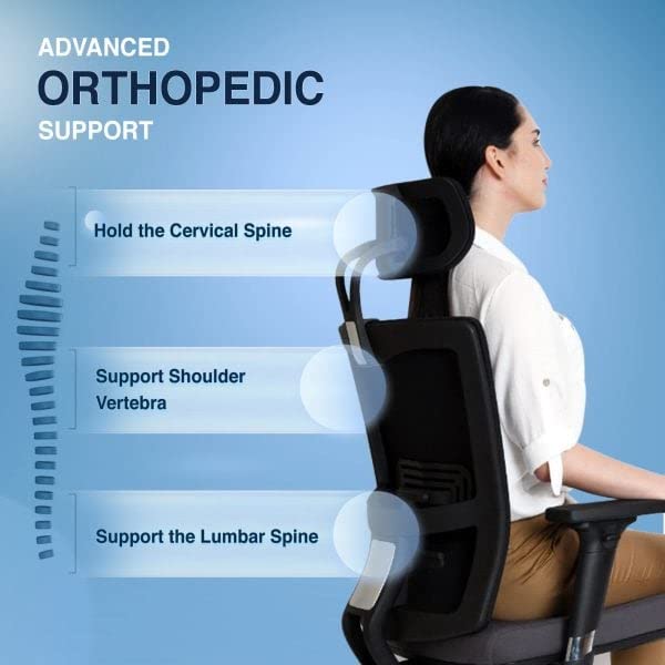 The Sleep Company SmartGRID Onyx Orthopedic Chair for Home & Office |Adjustable Lumbar Support for Ergonomic Sitting Posture|Made in India|Multiple Adjustments Mechanism(Classic Black & Grey)