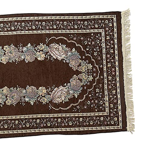 Trendy Retail Portable Polyester Muslim Prayer Rug Ramadan Tassel Carpet Mat Dark Brown
