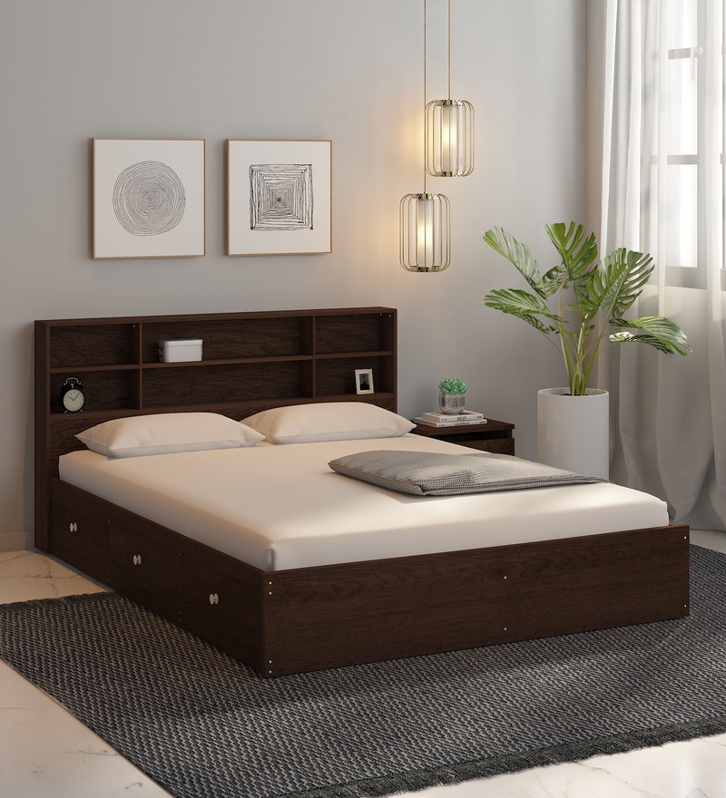 Tsukiko Queen Size Bed With Drawer Storage In Wenge Finish