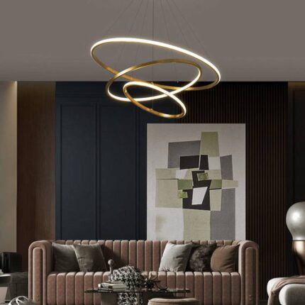 3 RING GOLD BODY MODERN DOUBLE LED CHANDELIER FOR DINING LIVING ROOM OFFICE HANGING SUSPENSION FANCY LAMP – WARM WHITE