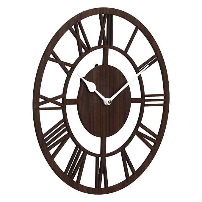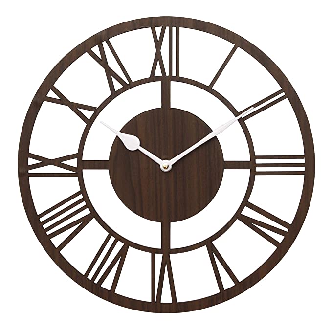 Home Clocks Webelkart Roman Beautiful Round Wood Wall Clock without Glass (12 Inch x 12 Inch, Brown)