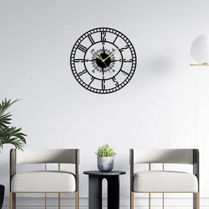 The Next Decor Stylish Round Metal Wall Clock Wall Décor for Living Study Hall Dining and Bedroom Roman Modern Time Piece for Home Office (Matte Black, 24 Inch)