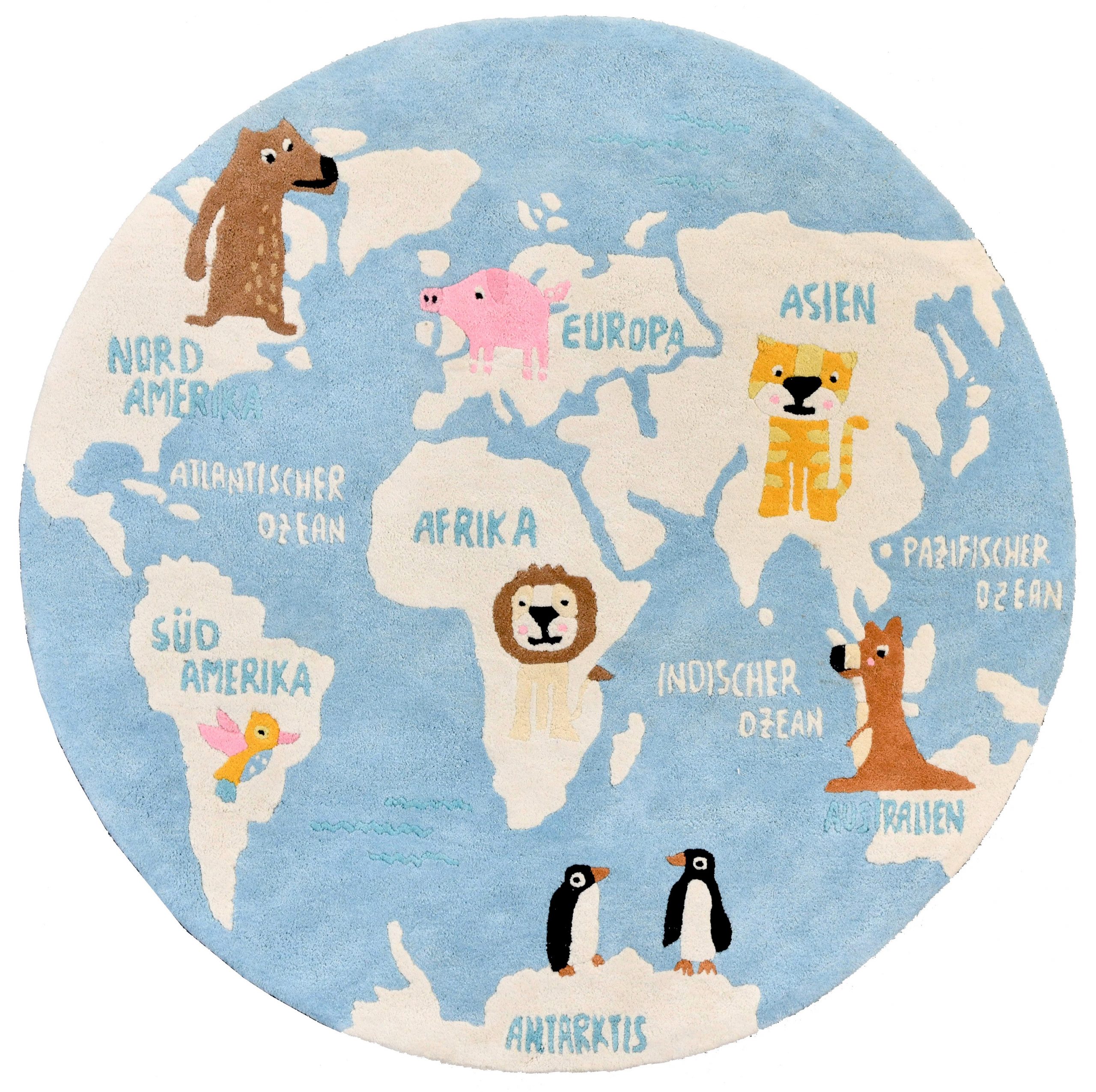 Home Carpets World Map Hand Tufted Kids Rug with Backing